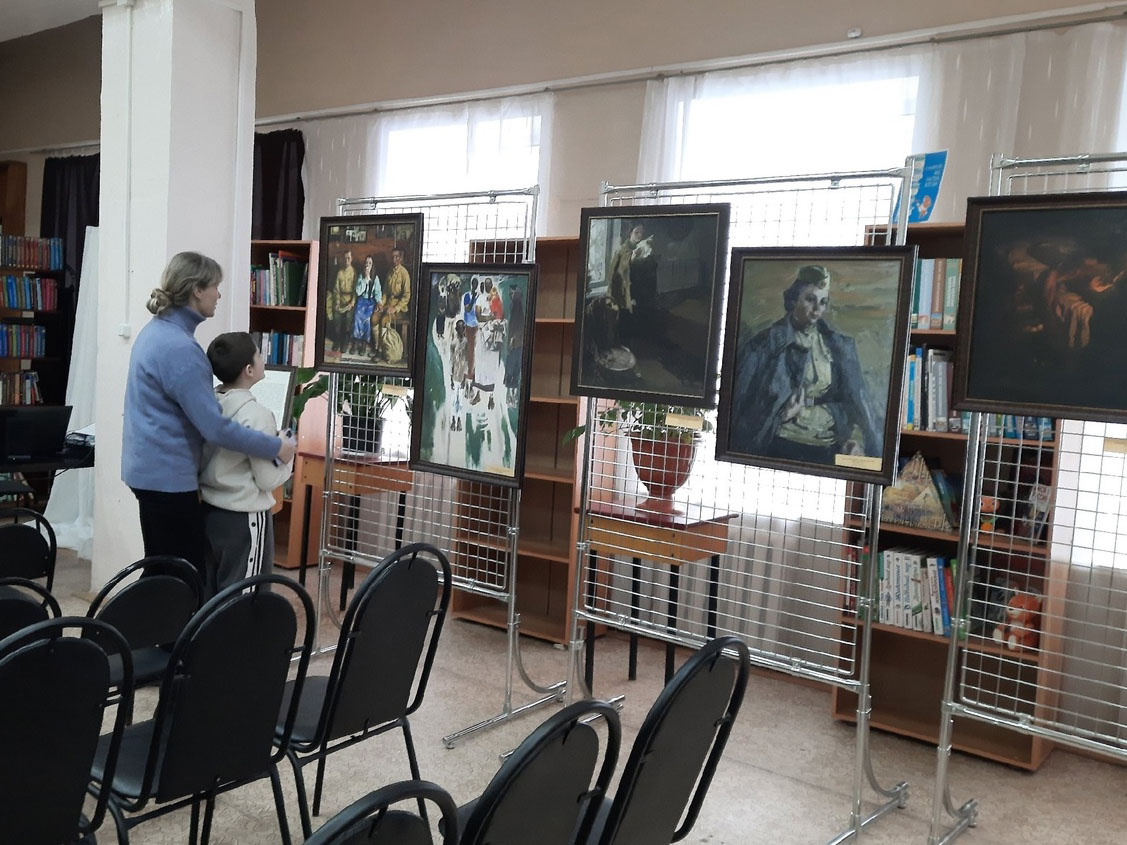 Для них мы провели обзор выставки "Воспоминания о войне" - принт-копии картин из фонда Тверской областной картинной галереи и историко-краеведческий экскурс "Бежецк в годы Великой Отечественной войны".