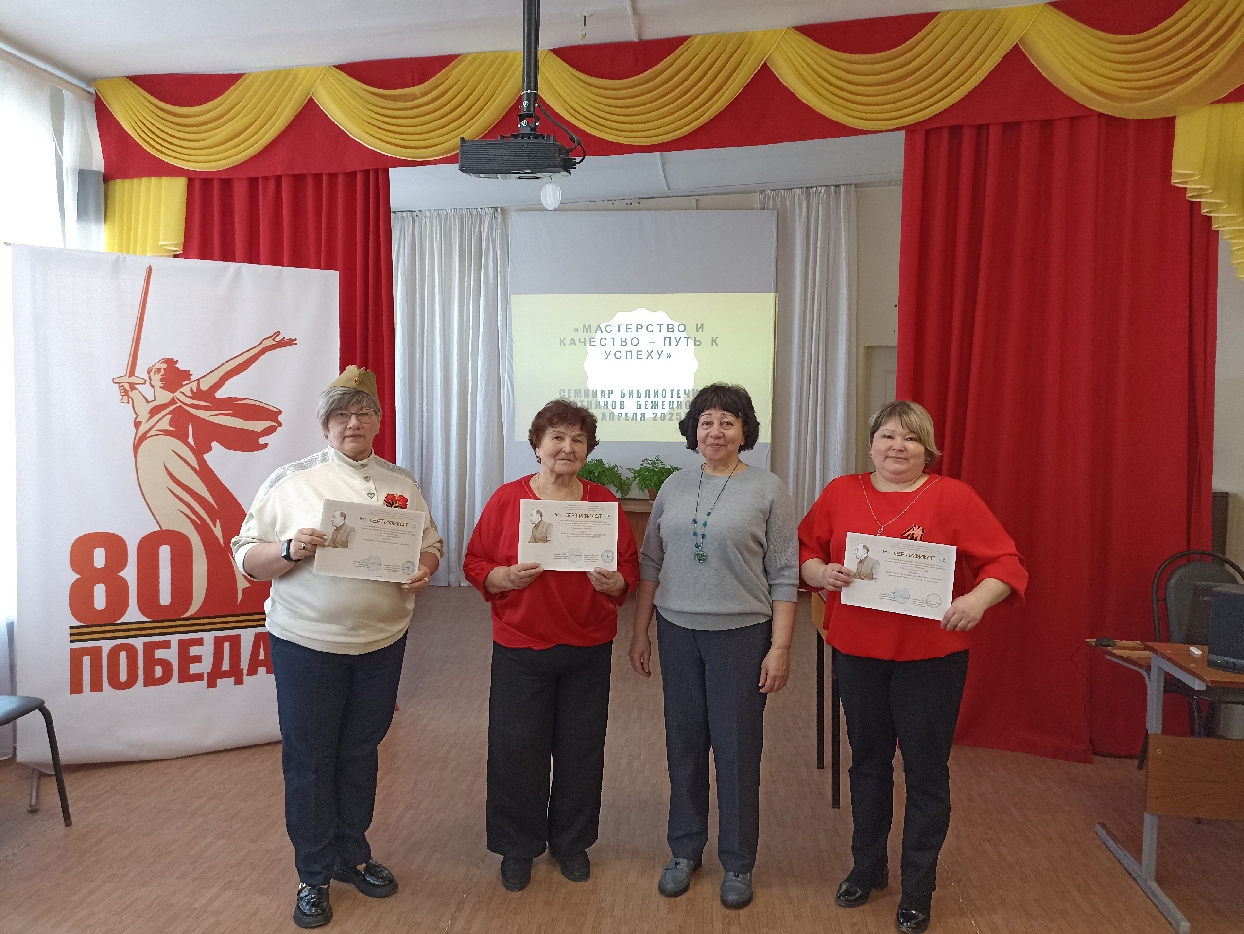 Вторая часть семинара была посвящена 2-ому туру конкурса профессионального мастерства «Большой библиотечный марафон «Читаем книги о войне»». Команды представили жюри полные сценарии, показали яркие фрагменты мероприятий, посвященные 80-летию Победы в Великой Отечественной войне.