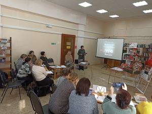 Для участников семинара специалистами центральной библиотеки проведены консультация «Оформление документа в программах Word и Publisher», обзор «По страницам журнала «Родина», представлена выставка принт-копий картин «Воспоминания о войне» из фонда Тверской картинной галереи.
