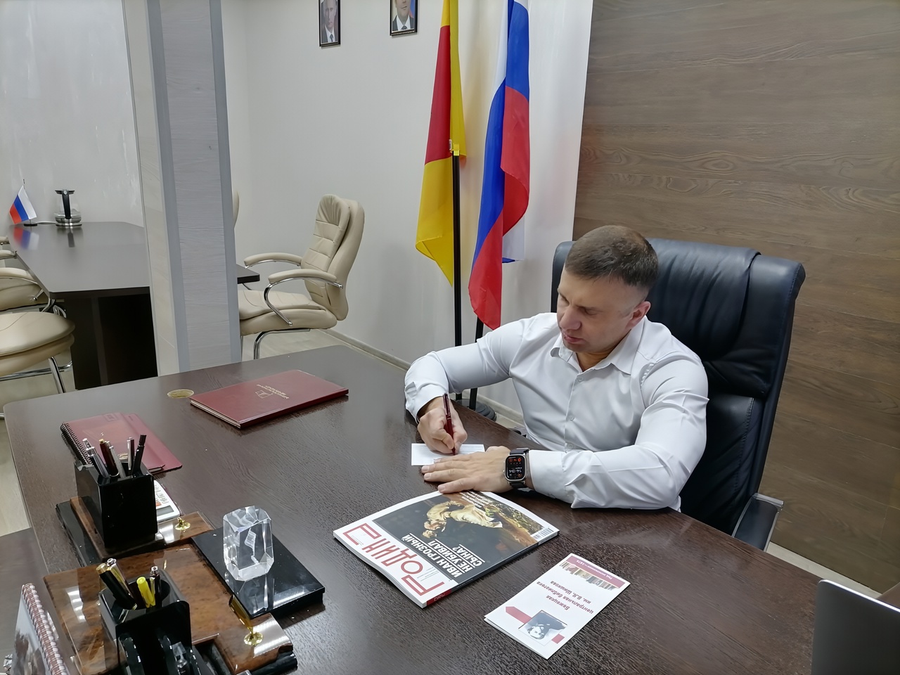 Когда мы объяснили цель и посыл нашего нового начинания, Андрей Борисович без излишних разговоров согласился стать участником акции «Сделай шаг в будущее - запишись в библиотеку!».