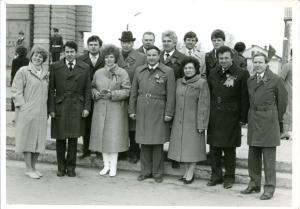 Нижний ряд (слева - направо) Абдулова Людмила Юрьевна, зав. отделом пропоганды ГК КПСС, Краснов Юрий Михайлович, первый секретарь ГК КПСС, Архипова Нина Викторовна, секретарь ГК КПСС, Чумаков Валерий Иванович, председатель исполкома райсовета, Ягольницкая Галина Васильевна, председатель профсоюза работников сельского хозяйства, Александров Виктор Алексеевич, зам. председателя райсполкома, Лазарев Геннадий Викторович, зав. промышленно-планового отдела ГК КПСС.