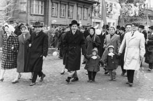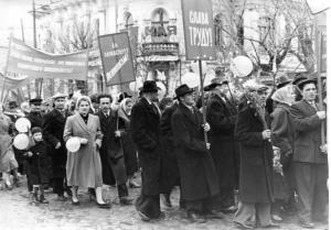 Первомайские демонстрации были праздничными, радостными событиями: их участники шли с цветами, флагами, воздушными шарами и транспарантами. Было принято поздравлять родных, близких, товарищей по работе; люди желали друг другу здоровья, весеннего настроения, успехов в труде и счастья в личной жизни.