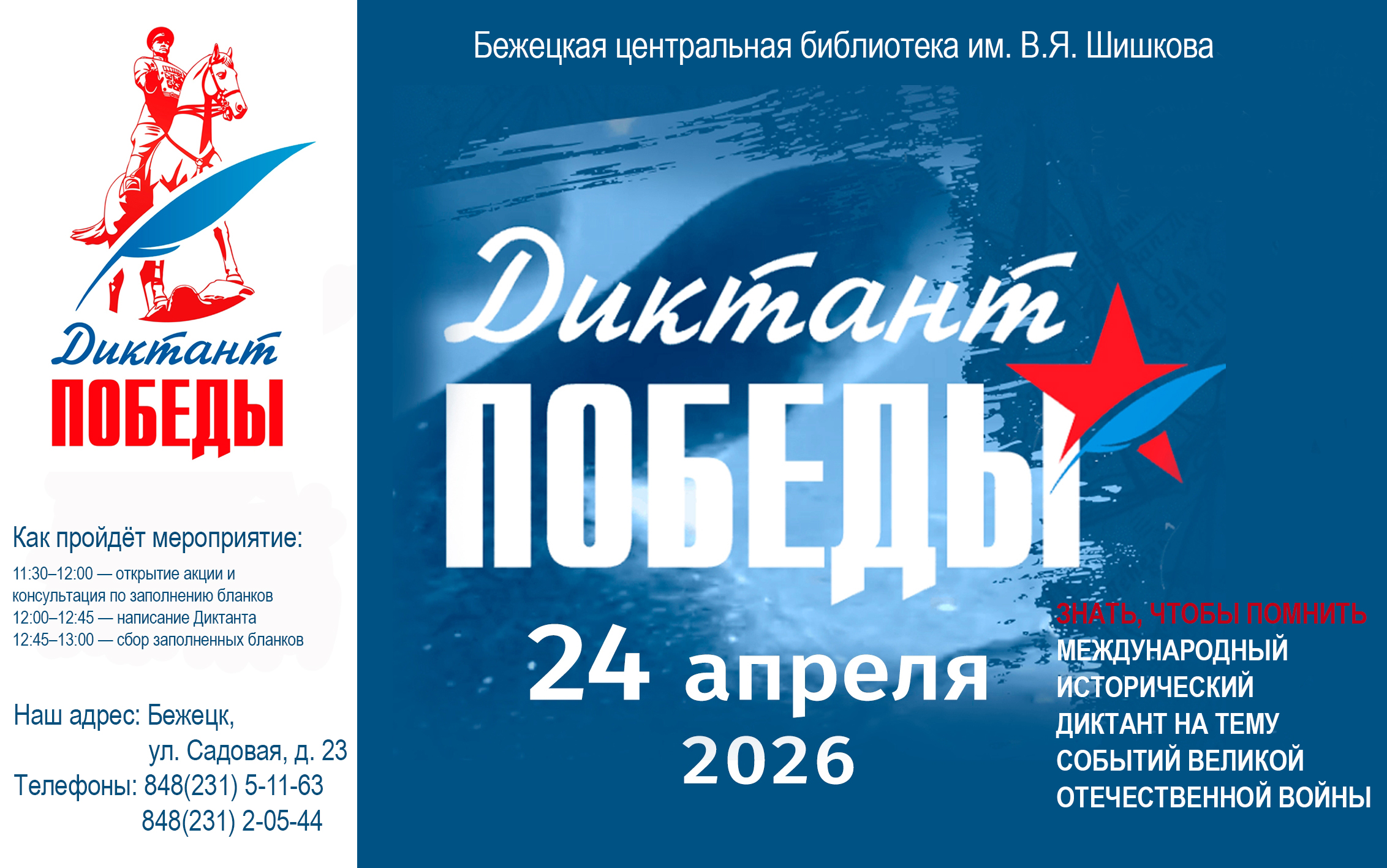 Бежецкая центральная библиотека им. В.Я. Шишкова станет одной из площадок «Диктанта Победы».