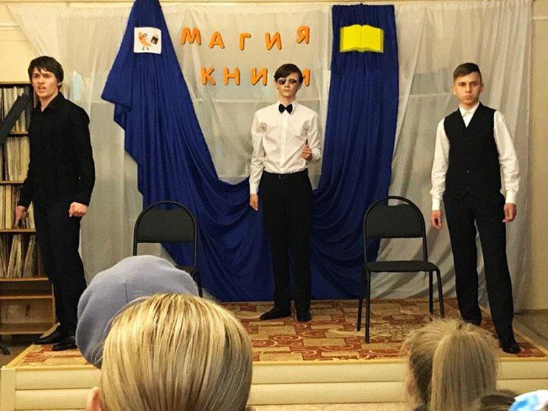 Молодые актеры театра - студии ( руководитель И. Новикова) Меричанский Максим, Остапчук Максим и Шорин Даниил представили трагедию А.С. Пушкина "Моцарт и Сальери".