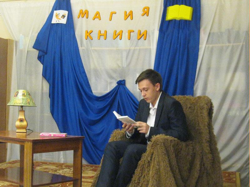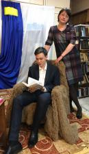 Иронические рассказы Маши Трауб и Александра Цыпкина прозвучали в исполнении библиотекаря абонемента Елены Василевич и учасника моодежного театра - студии Данила Кунаева.