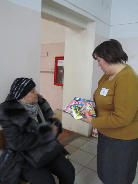 17 февраля в 10 часов в здании районной (взрослой) поликлиники работниками Центральной районной библиотеки им. В.Я.Шишкова совместно со студентами Бежецкого колледжа им. А.М. Переслегина проводилась акция «Книги и журналы в подарок». |