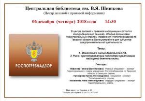В ходе мероприятия присутствующие обсудили актуальные темы, связанные с изменениями в законодательстве РФ и Риском - ориентированном подходе при организации надзорной деятельности. Лекторы семинара: - Новикова Галина Валентиновна - главный специалист - эксперт Территориального отдела Управления Роспотребнадзора по Тверской области в Бежецком районе; - Прохорова Ирина Александровна - специалист - эксперт Территориального отдела; - Михайлова Анна Александровна - ведущий специалист - эксперт Территориального отдела.