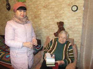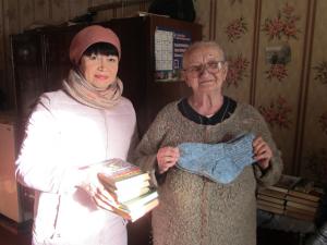 Сотрудница отдела внестационарного обслуживания посетила с акцией «Рейд милосердия – книга 03» насколько читательниц. Были обменяны книги, а также вручены вязаные носочки в подарок от библиотекарей- рукодельниц.