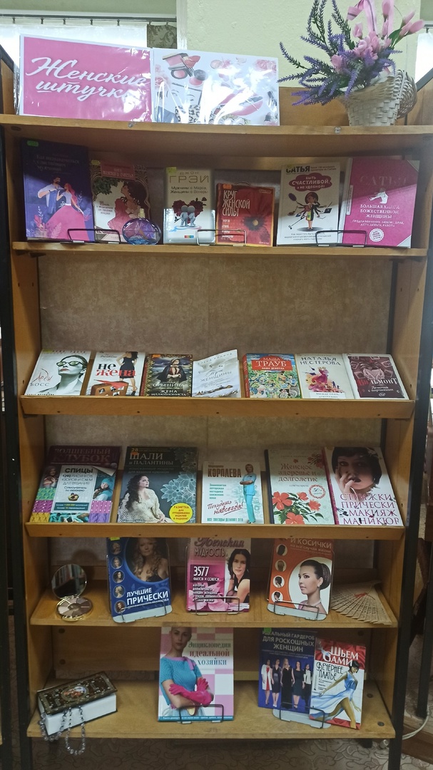 На абонементе библиотеки представлена выставка "Женские штучки", которая раскрывает секреты женской психологии, красоты, здоровья и мастерства.
