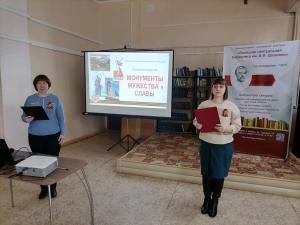 Библиотекари провели слушателей по местам боевой славы Великой Отечественной войны, рассказали о самых значимых памятниках, увековечивающих образы советских воинов-защитников, тружеников тыла и простых граждан.