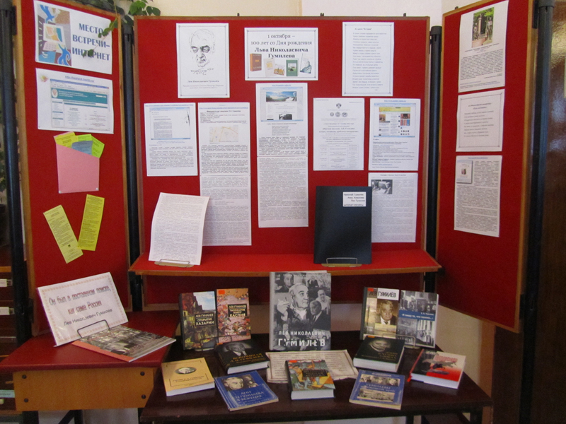 | Выставка была оформлена к 100-летию со дня рождения Л.Н. Гумилева. |