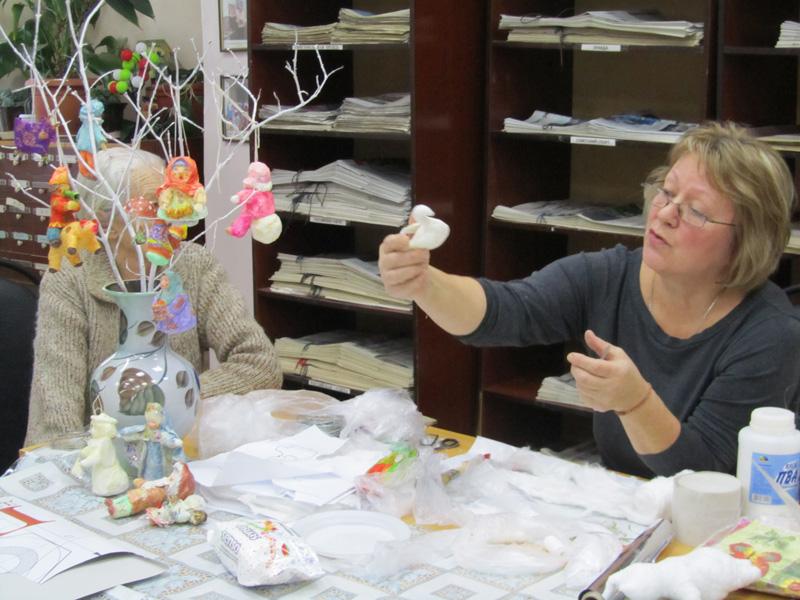 8 декабря в центральной библиотеке Ольга Морошкина провела мастер-класс по созданию новогодней игрушки из ваты. Создание таких игрушек новое для Ольги Павловны увлечение, но ей уже удалось найти свой стиль и создать незабываемые новогодние украшения. Своим опытом она щедро делилась с пришедшими на мастер-класс, творческий процесс увлек и детей и взрослых.