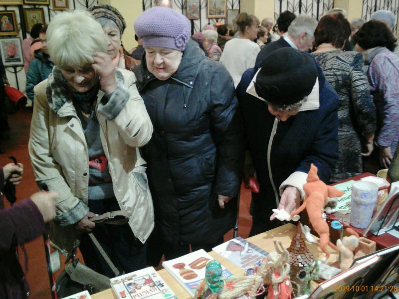 На библиотечной площадке в фойе была представлена выставка книг и поделок "В помощь вашему творчеству". Заинтересованных участников приглашали в клуб общения "Перекрёсток".