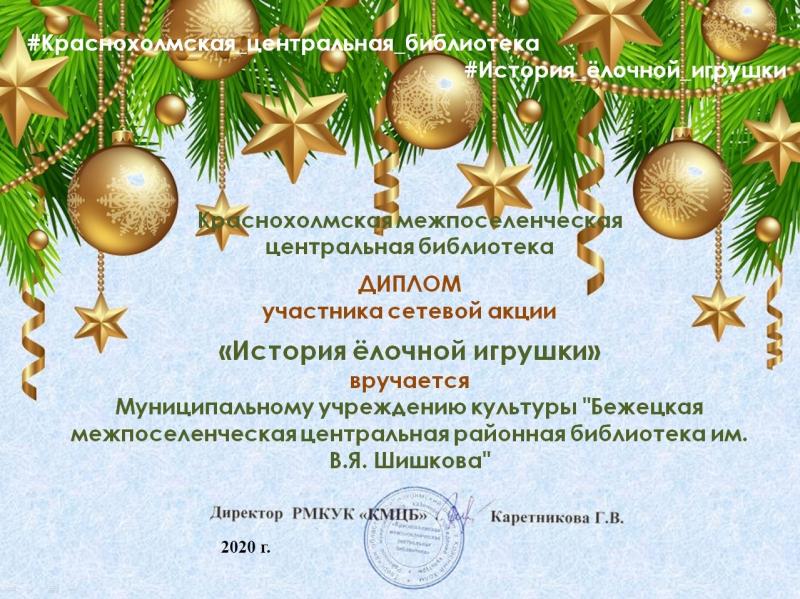 Бежецкая библиотека приняла участие в сетевой акции Краснохолмской центральной библиотеки "История ёлочной игрушки".