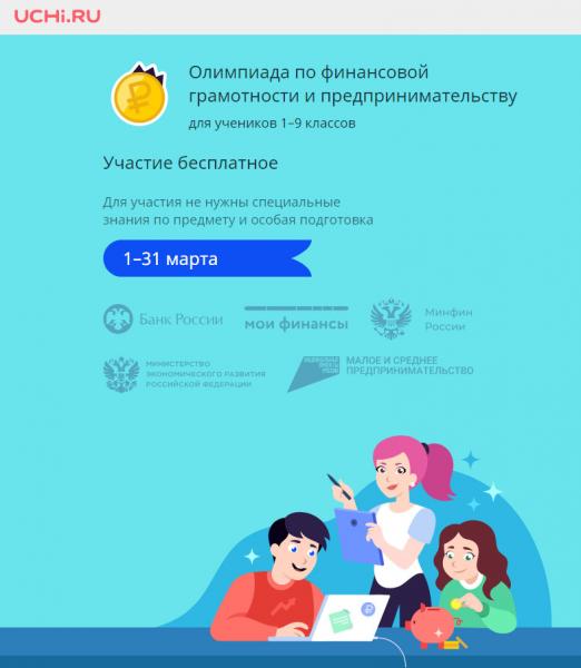 ВСЕРОССИЙСКАЯ ОНЛАЙН-ОЛИМПИАДА ДЛЯ ШКОЛЬНИКОВ 1-9 КЛАССОВ ПО ФИНАНСОВОЙ ГРАМОТНОСТИ И ПРЕДПРИНИМАТЕЛЬСТВУ