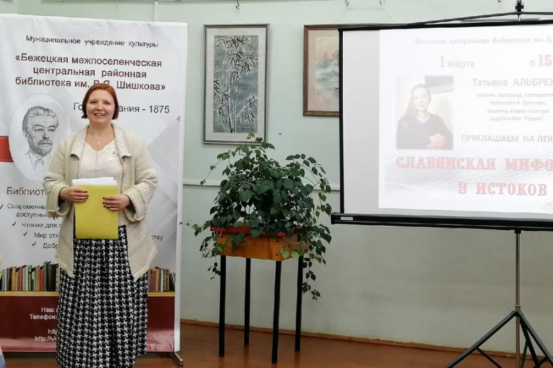 Перед участниками встречи с лекцией "Славянская мифология: У истоков" выступила Татьяна Борисовна АЛЬБРЕХТ, историк, театровед, исследователь творчества Н.Гумилева, редактор отдела культуры издательства "Родина" (г. Москва).