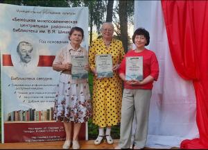 5 августа в День города на библиотечной площадке у памятника Семье Гумилёвых-Ахматовой состоялось награждение участников и победителей районных конкурсов.