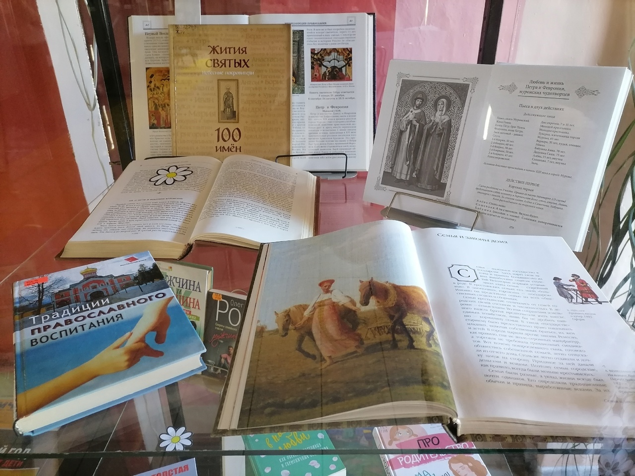 На выставке представлены книги о святых благоверных Пётре и Февронии Муромских.
