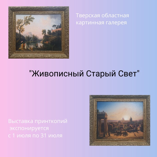 Вашему вниманию представлена выставка принт-копий живописных произведений из собрания Тверской областной картинной галереи с архитектурными пейзажами и видами европейских стран.