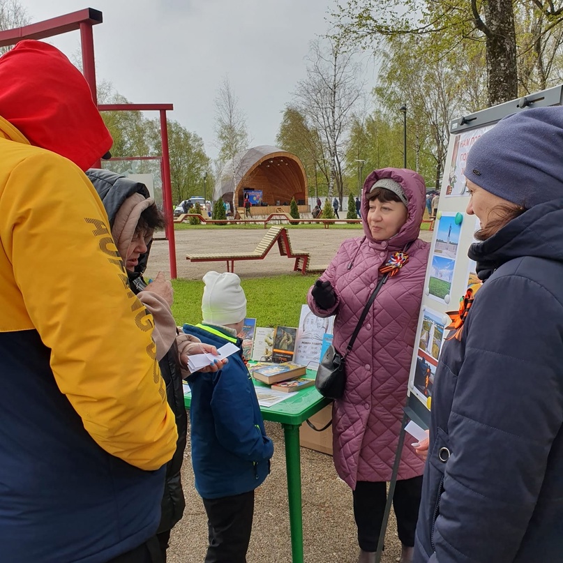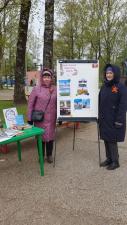 В День Победы, по уже сложившейся традиции, сотрудники нашей библиотеки приглашают жителей и гостей города в городской сад, в выездной читальный зал. Не оказалось исключением и нынешнее 9 мая, хотя погода не радовала.