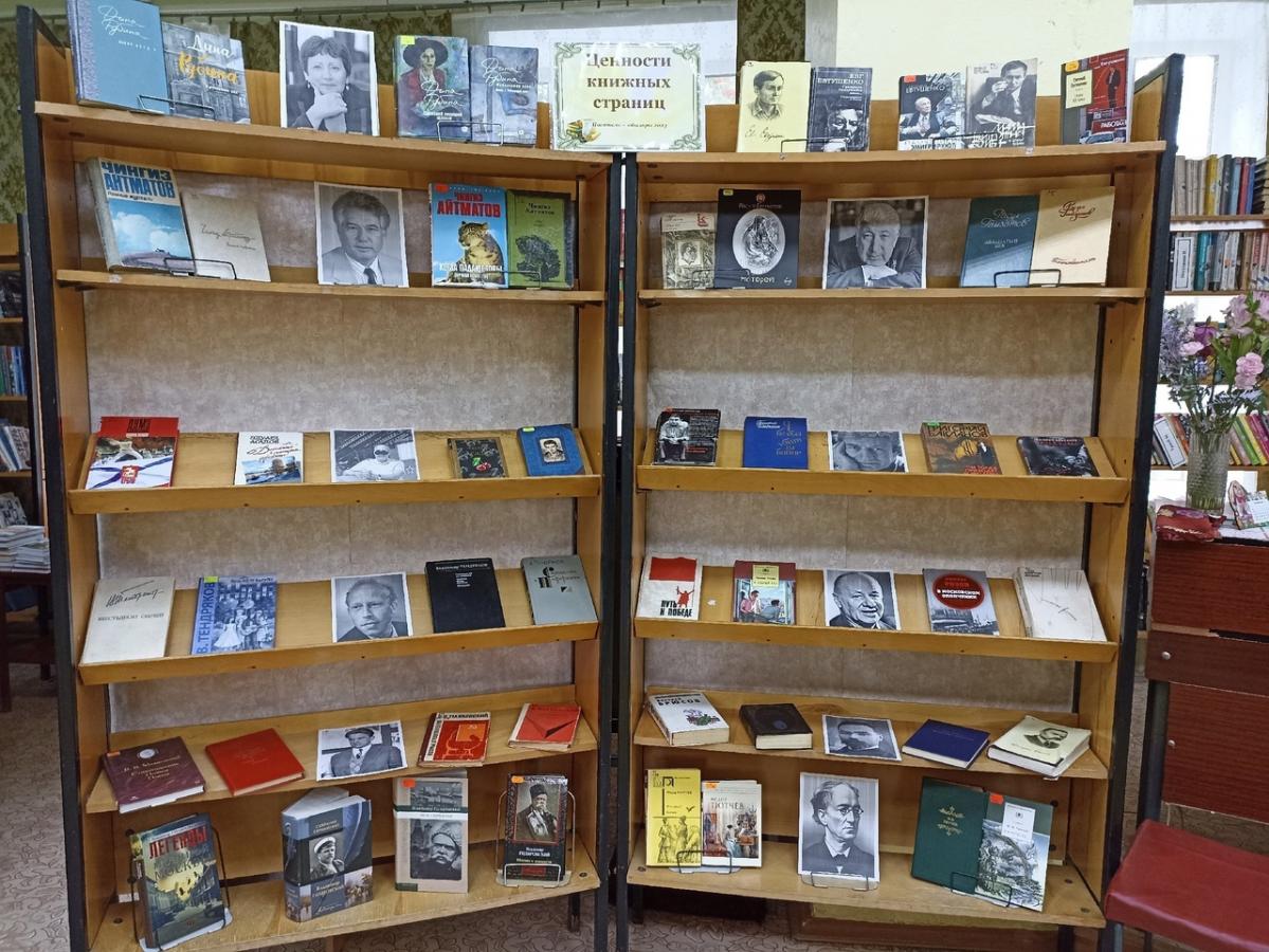 На абонементе Бежецкой центральной библиотеки им. В.Я.Шишкова оформлена книжная выставка "Ценности книжных страниц", посвященная писателям юбилярам 2023 года.