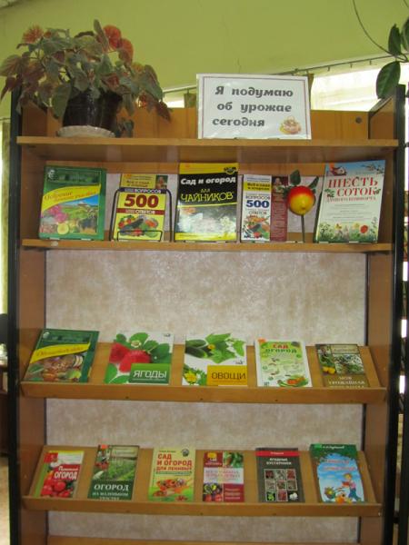Сад и огород для горожан был и остается местом, где можно и поработать и отдохнуть с удовольствием. Работа на земле удаляет человека от городской суеты, укрепляет его здоровье, снижает нервные перегрузки. Общение с растительным миром приносит людям радость, сближает его с природой. Даже небольшой земельный участок, обработанный умело и своевременно, может принести хороший урожай и радовать цветением клумб с ранней весны до поздней осени, но чтобы получить хороший урожай с наших шести соток, надо приложить немало усилий. Незаменимые помощники в этом деле – уже приобретенный опыт, благоприятная погода плюс... вовремя прочитанная умная книга по садоводству и огородничеству. Книжная выставка «Я подумаю об урожае сегодня» приурочена к началу дачного сезона. Представленные книги будут интересны как начинающим, так и опытным огородникам. Желаем вам богатых урожаев! |