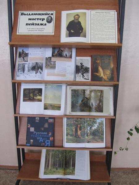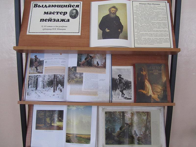 "Выдающийся мастер пейзажа" О работах Ивана Ивановича Шишкина знают даже люди, далекие от живописи. Шишкин получил популярность еще при жизни, рисуя природу России, которую он так любил. Современники называли его "царем леса", и не случайно, ведь среди творений Шишкина можно найти немало картин с изображением лесных пейзажей. Родился Иван Иванович Шишкин 25 января 1832 года. Постигал живописное искусство в Московском училище живописи и в Петербурге в Академии художеств. Преподаватели сразу отметили склонность Шишкина к пейзажной живописи. Уже в первый год пребывания в академии ему была присуждена малая серебряная медаль за "Вид в окреснастях Петербурга". В 1858 г. художник получил Большую серебряную медаль за картину "Вид на острове Валааме". Картины известного пейзажиста сложно спутать с работами других художников. Пейзажист рисовал природу крупным планом, делая акценты на шершавой коре деревьев, зелени листьев, выпирающих из земли корнях. Если Айвазовский предпочитал изображать силу стихии, то природа Шишкина кажется умиротворенной и успокоенной. Художник умело передавал это чувство успокоенности - природа на его полотнах кажется незыблемой и почти вечной. На выставке читального заля представлены красочные альбомы с репродукциями картин И.И. Шишкина. |